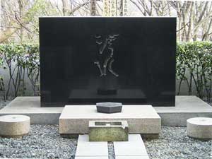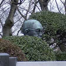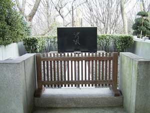 誰かいる! 一見普通のお墓。ただ、2重に門があって、なかなか厳重なつくりになっている。 上の虎のお墓もそうだが、植木もよく手入れされていて、そこらの家の庭よりよっぽど豪華だ。 それにしても、墓石は普通だなあー・・とよく見ると、、、ん?。左手奥に何か見える。