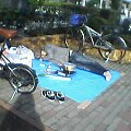 普段道に寝てると浮浪者っぽいが、花が咲いてるので、アリ。